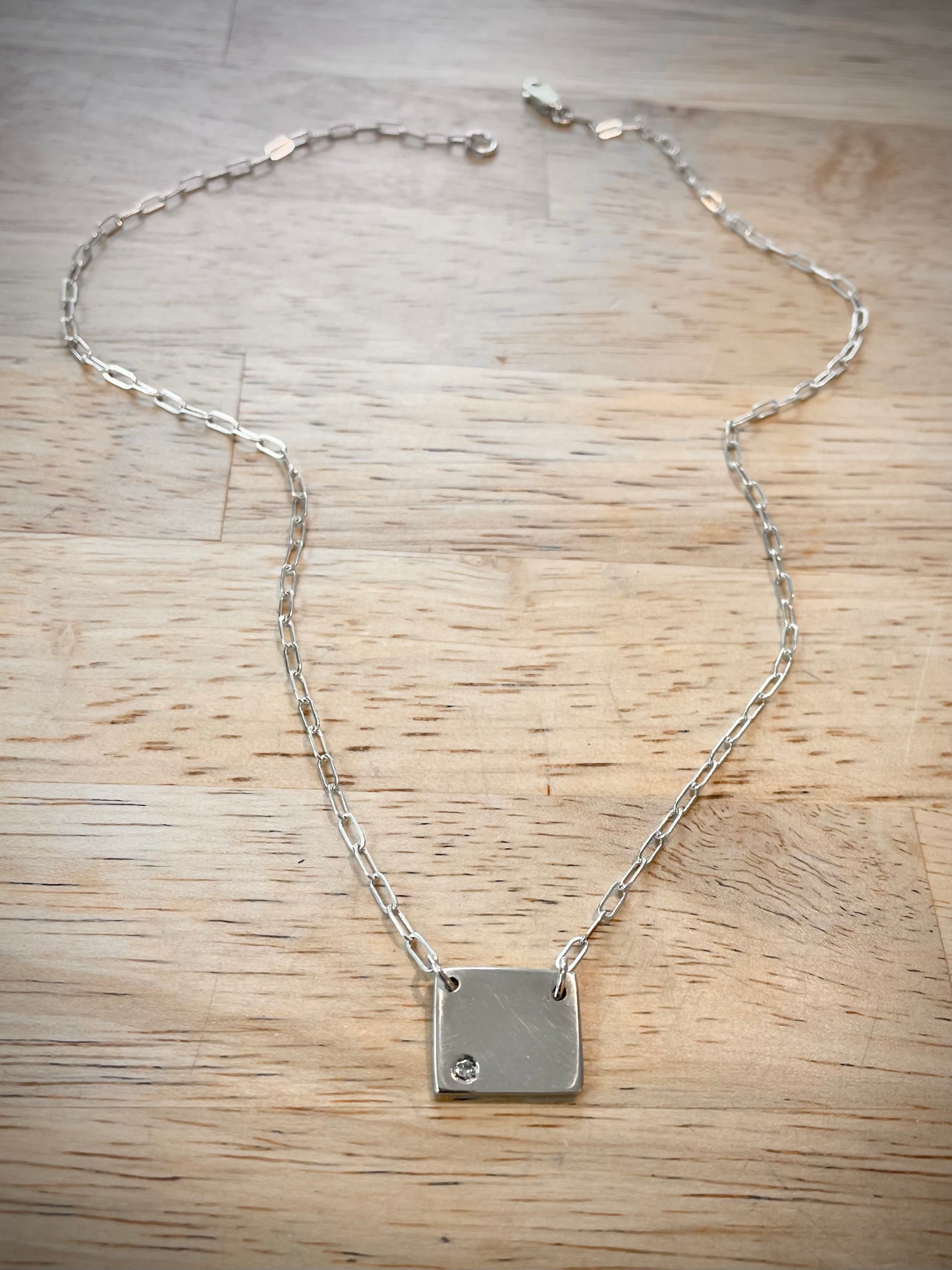 Elegant and minimalist with a touch of hidden meaning…IYKYK. This necklace features a solid sterling silver “map” of Colorado, accented with a natural diamond marking Durango. The 20-inch adjustable chain makes it versatile for everyday wear. Crafted with sustainably and ethically sourced metals and stones, this piece is a tribute to the beauty and community of Durango, the place that inspired it.